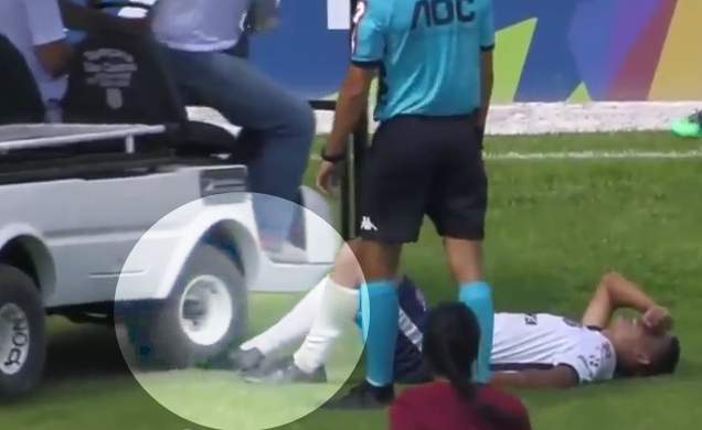 Bernardo, joueur des moins de 20 ans du Trindade AC, était au sol à cause d' une blessure lors du match de la Copa São Paulo de Futebol Júnior contre le club brésilien Flamengo .